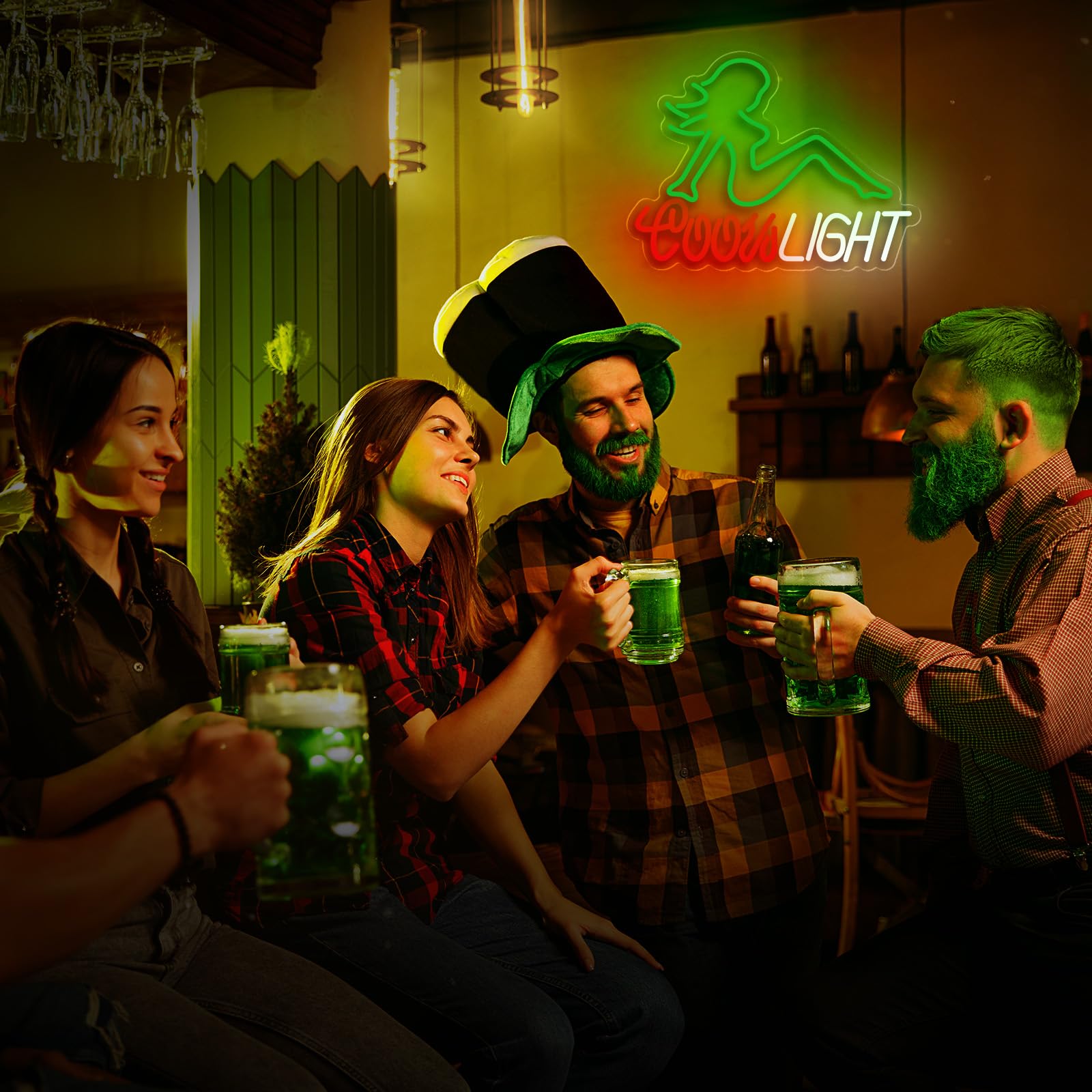 Gloziqoe Crs Light Neon Sign, Beer Neon Signs for Man Cave Bar Decor, Green Lady LED Neon Lights Signs