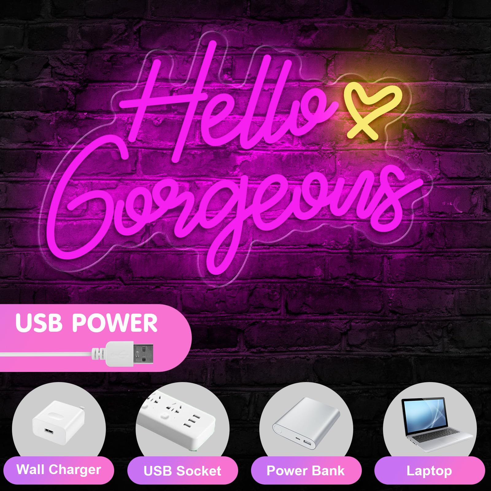 Gloziqoe Hello Gorgeous Neon Sign, Hello Led Neon Sign for Home Wedding Birthday, Hello Beautiful LED Neon Lights Party Decorations(Adjustable Brightness)