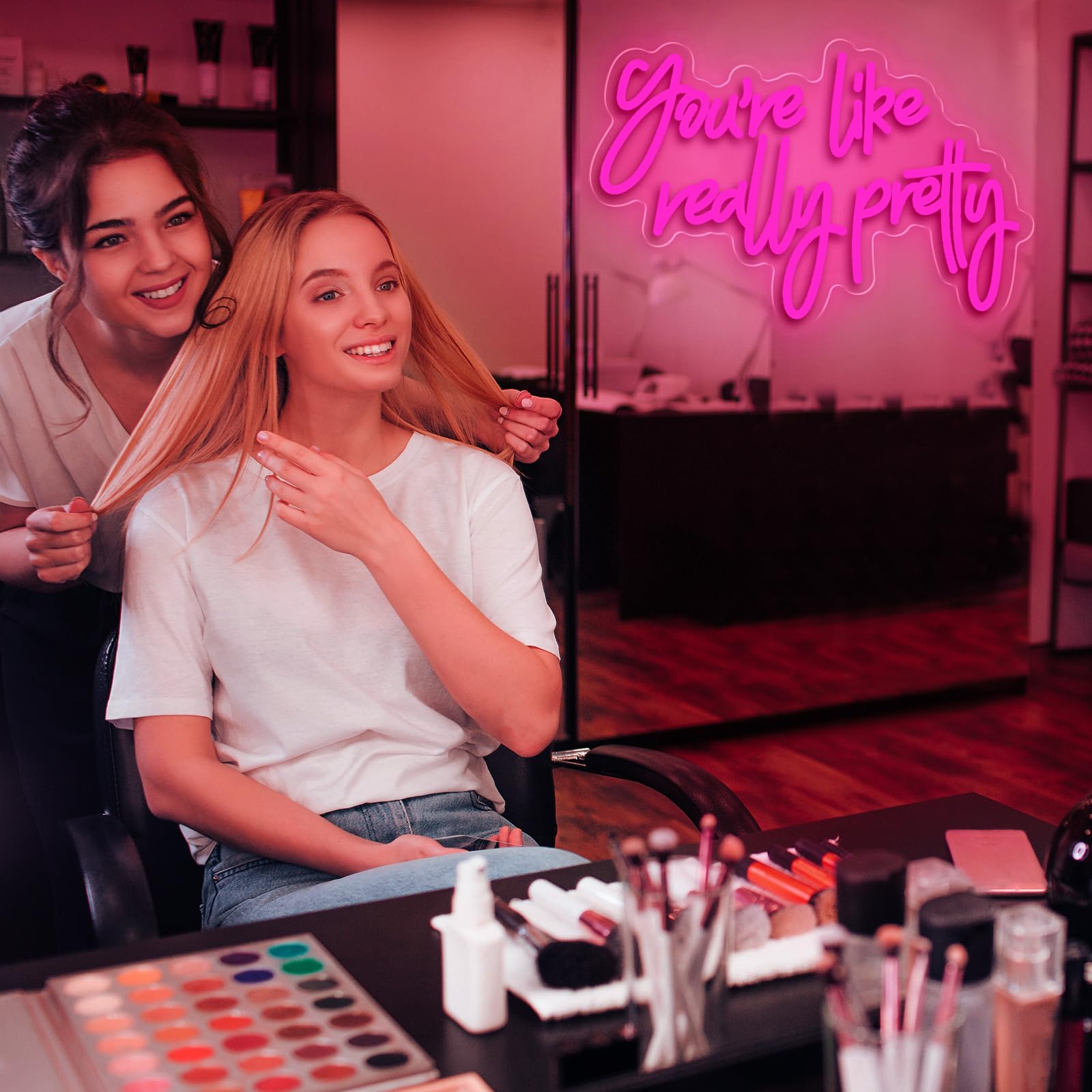 - 【You are Like Really Pretty Neon Sign】This "you're like really pretty" neon sign, with its unique design and soft lighting, easily becomes the focal point of any space. Made from high-quality materials and using advanced craftsmanship, the lighting is stable, durable, energy-efficient, and free from safety hazards. Its standard size is suitable for a variety of scenarios. Whether it's a cozy bedroom or a trendy store, it can create a distinctive atmosphere and enhance the style
